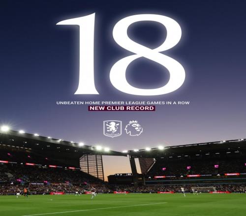 据维拉官方数据统计,俱乐部在英超联赛已经连续18个主场不败,创造了队史新纪录。